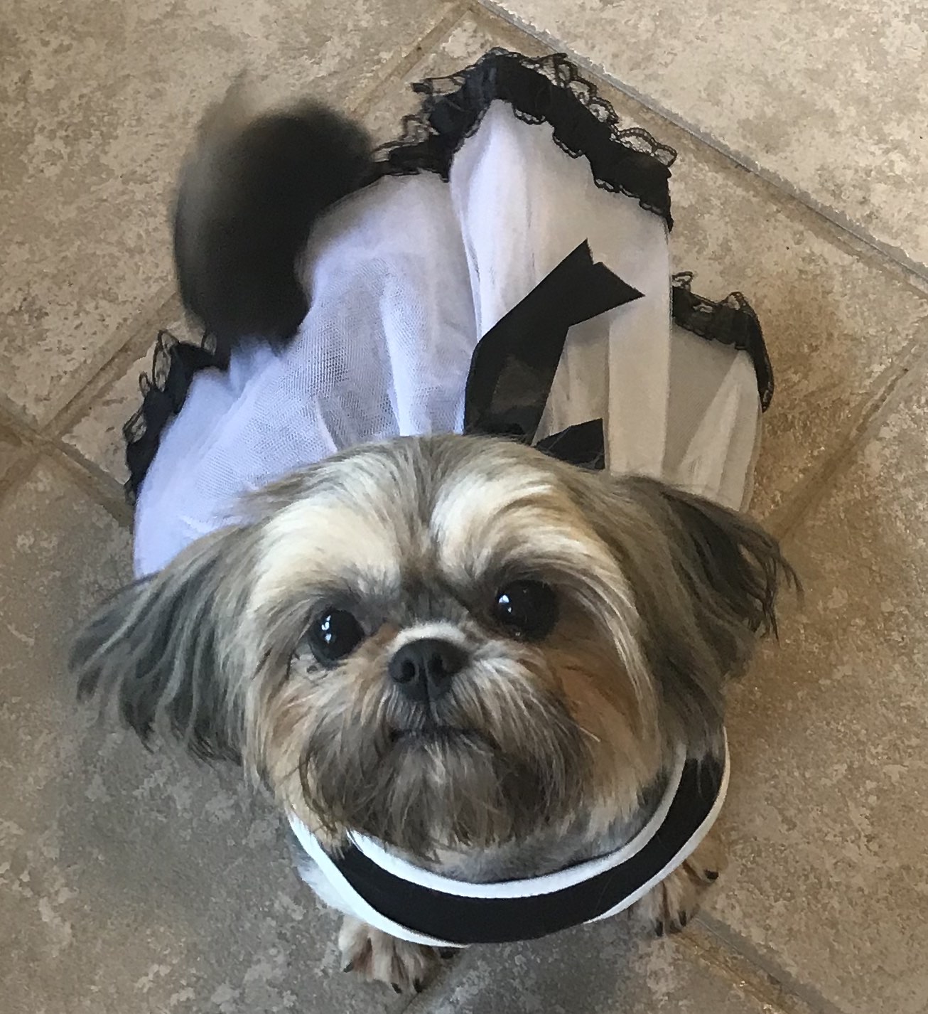 Waverly is a chocolate and white 12lb girl who is somewhat shy with strangers. She lets me know when someone is here.